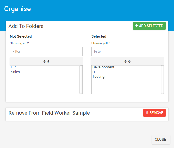 3. On Not Selected listing box click on the folders that you'd like to add your items into. They should move to the Selected listing box.