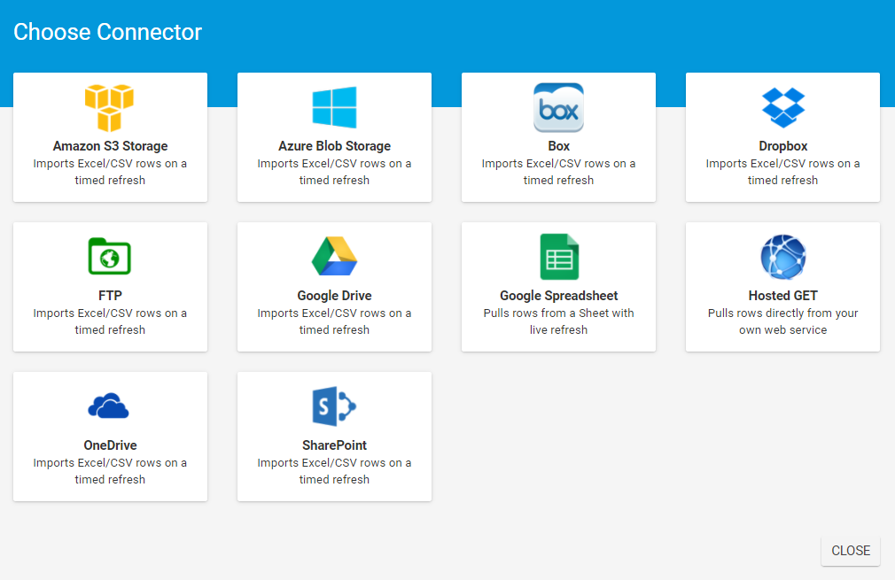 Our platform enables you to quickly and easily connect your data sources to data from a Google Spreadsheet.