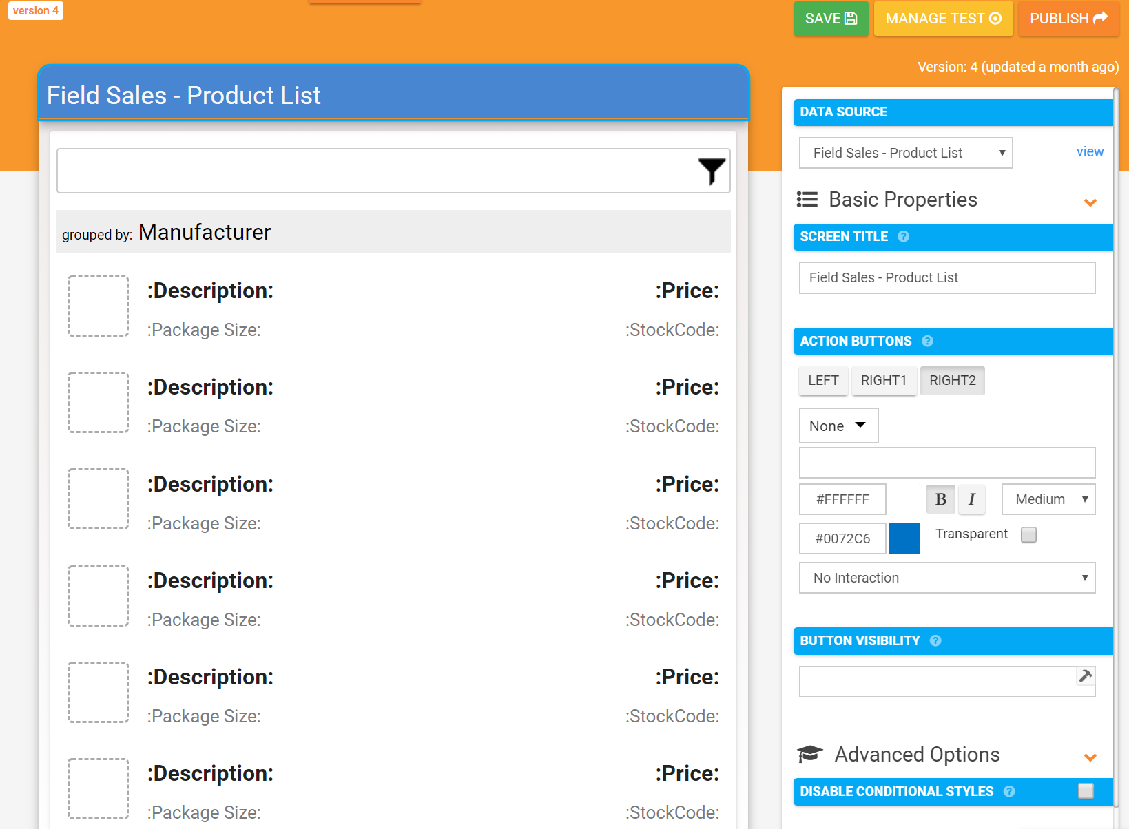 The List of Data Screen Type is one of our data perusal screens. This screen type is data driven and enables you to visualise the rows in a data source.