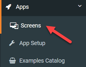 To add a listing screen, navigate to Apps -> Screens