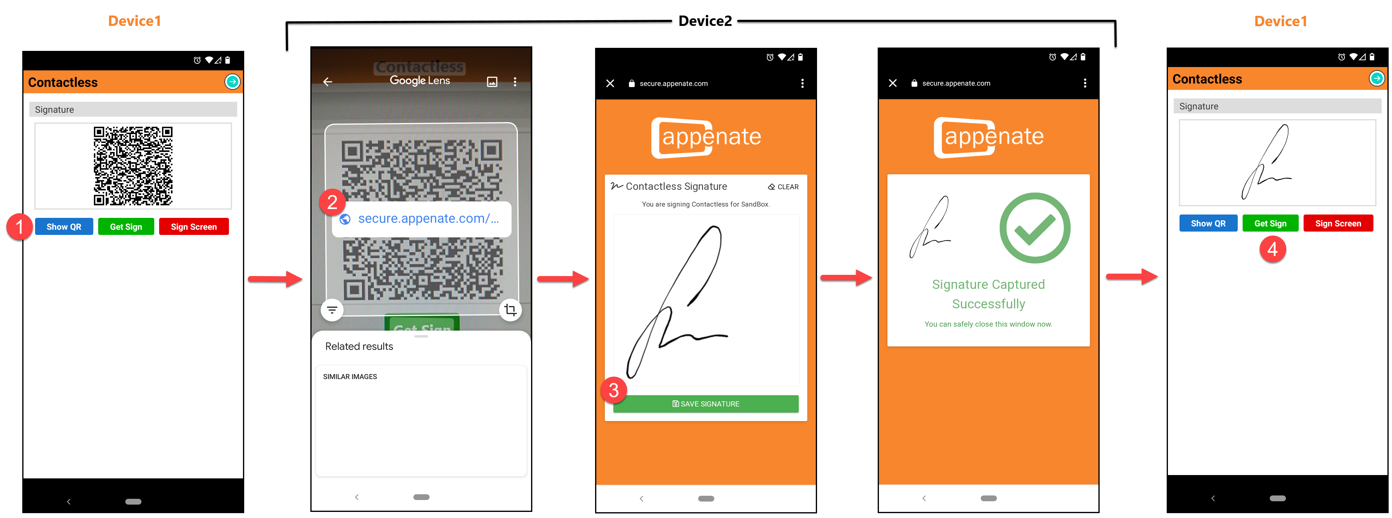 Users can share a device, which can be handed to the person required to capture the signature. - Contactless Signature Capture: