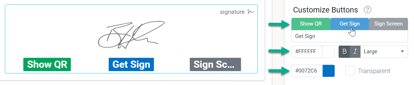 | Display text Required | Edit the display text to whatever you want. Default: Show QR, Get Sign, Sign Screen. |